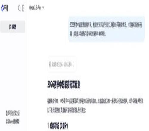 千問:成都蓉城為最大熱門
