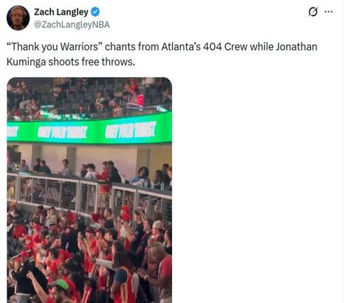 因此在比賽中庫明加一次又一次打出傲人表現后,現場老鷹球迷嗨翻了,在庫明加罰球時大量球迷齊聲高呼:“Thank you Warriors(謝謝你,勇士)”