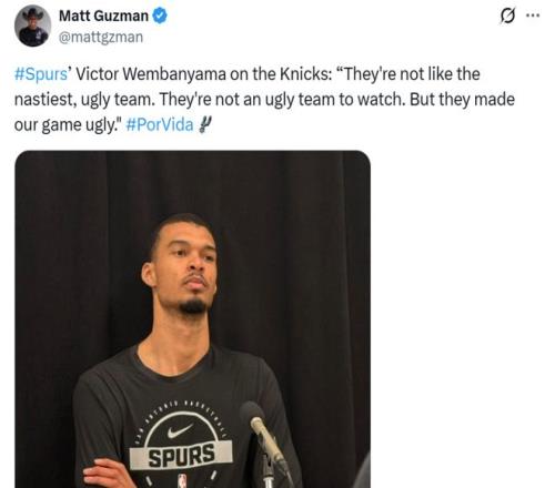馬刺11連勝遺憾終結,文班空砍25+13+4帽!4點證明輸掉與尼克斯這場硬碰硬對決一點也不冤。