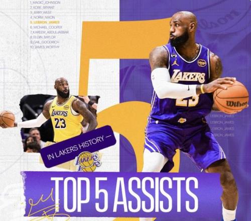 比賽進行到第二節,隨著詹姆斯送出的一次助攻,他的湖人生涯助攻總數來到3667次,超越球隊名宿邁克爾-庫珀升至隊史第五位。