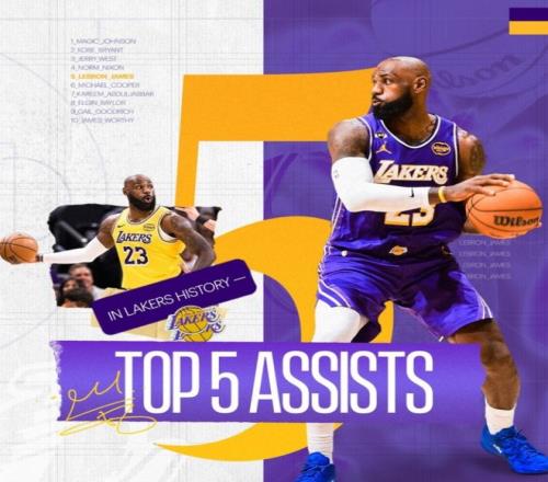 - 1. 詹姆斯湖人生涯已經送出3667次助攻,超庫珀躋身隊史第五位;