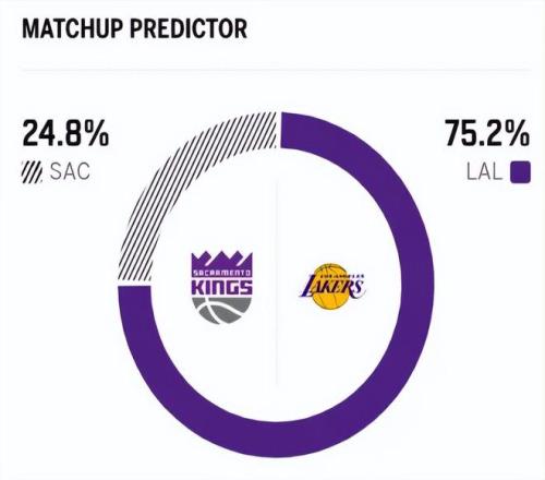 賽前,美媒ESPN對本場比賽進行了勝率預測,湖人隊勝率高達75.2% ,國王勝率則僅有24.8% ,劣勢明顯 。