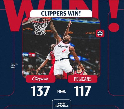倫納德復出拿到23分5助攻,替補席的米勒6中5拿到19分8助攻,快船全隊5人上雙,最終快船20分大勝鵜鶘,這場比賽后快船重返西部第九的位置。