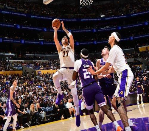 是的,很久沒(méi)有看到湖人打出如此流暢的比賽了,兩場(chǎng)比賽合計(jì)轟下257分,贏了52分,更重要的是,這兩場(chǎng)比賽湖人并不是純靠三巨頭不斷單打贏球的,而是靠著全員配合,上一場(chǎng)贏勇士,湖人全隊(duì)5人得分上雙,本場(chǎng)比賽贏國(guó)王,湖人全隊(duì)再次5人得分上雙,詹姆斯24分1籃板5助攻,東契奇28分5籃板9助攻,里夫斯12分5助攻,肯納德11分5助攻,艾頓12分4籃板2助攻,但這些還不是最可怕的,真正可怕的是,湖人全場(chǎng)送出34次助攻,僅僅9次失誤。