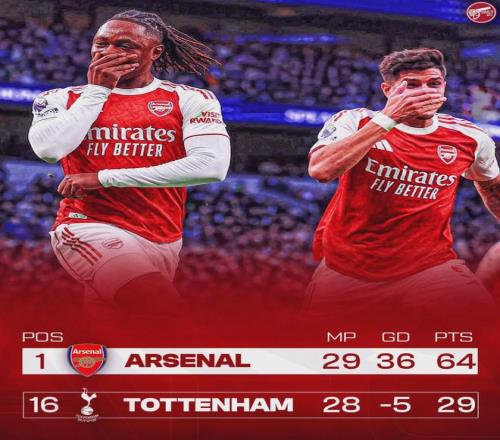 雖然阿森納其實最近幾年早就不把熱刺放在眼里,更不可能被熱刺反超,但這一刻對每個槍迷來說仍然值得慶祝,力壓死敵,北倫敦就是紅色的!不要不珍惜現在的成就,前幾年也不是沒有被熱刺力壓過,但此一時彼一時了!