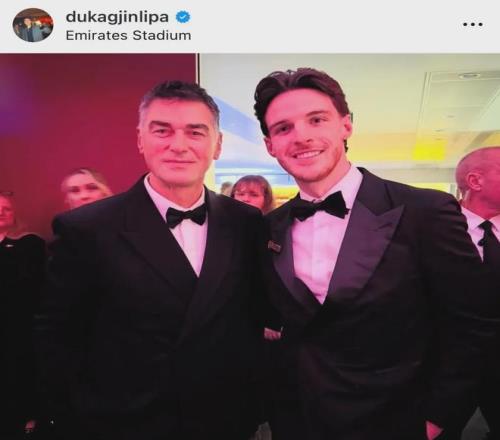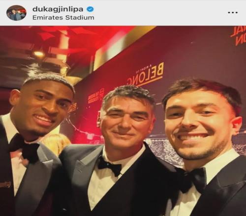 英國著名女歌手杜阿-利帕的父親杜卡金-利帕參加了周四的阿森納基金會慈善晚宴,并在IG上寫道:永遠的北倫敦!