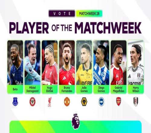 北京時間3月2日,英超官方公布聯賽第28輪最佳球員候選名單,這8名球員為貝托、達姆斯高、埃基蒂克、布魯諾-費爾南德斯、若昂-戈麥斯、迭戈-戈麥斯、加布里埃爾、哈里-威爾遜。
