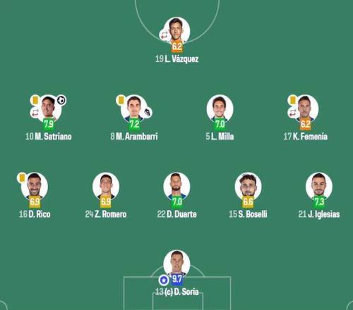 皇馬全場圍攻無果,補時階段還連吃兩張紅牌。馬斯坦托諾因對主裁出言不遜被直紅罰下,里索則在哨響后大腳踢球吃到第二張黃牌。0比1,皇馬遭遇聯賽兩連敗,積分榜上已經被巴薩甩開4分。