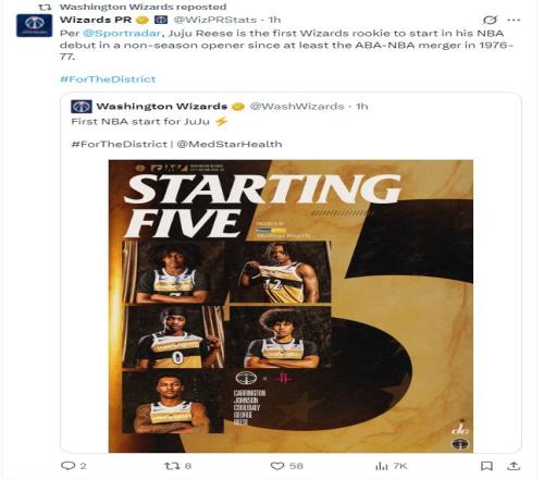 朱利安-里斯,成為1976-77年ABA與NBA合并以來,首位非賽季揭幕戰完成NBA首秀的奇才新秀。