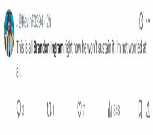 美球迷一早就嘲諷英格拉姆:這就是現(xiàn)在的布蘭登-英格拉姆,他不會(huì)一直保持這樣的狀態(tài),我一點(diǎn)也不擔(dān)心。(沒(méi)想到他還真的說(shuō)中了)