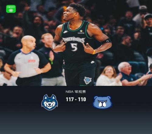 第四節森林狼愛德華茲拿下13分,灰熊考沃德拿下10分,最終森林狼117-110戰勝灰熊