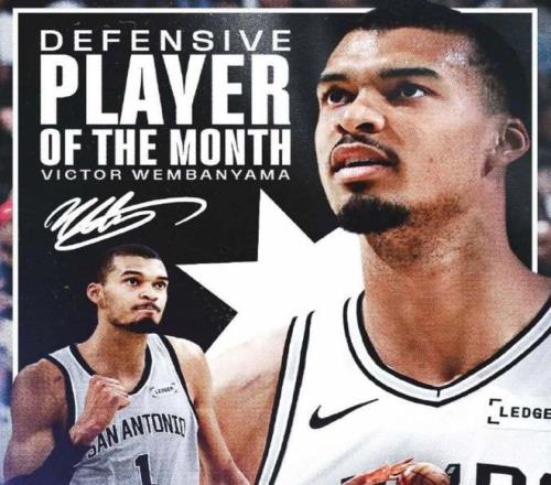 NBA官方宣布,文班亞馬拿到了2月份的月最佳球員和月最佳防守球員,馬刺隊的主教練米奇-約翰遜當選了2月份的月最佳主教練,馬刺隊的哈珀當選2月份的月最佳新秀。