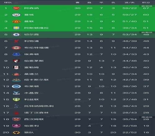 北京時(shí)間3月5日,今天凌晨英超第29輪又結(jié)束了5場(chǎng)比賽,我們看看最新排名!阿森納1-0小勝布萊頓,曼城2-2諾丁漢森林,曼聯(lián)1-2不敵紐卡斯?fàn)柭?lián),切爾西4-1大勝阿斯頓維拉,富勒姆0-1不敵西漢姆聯(lián)!
