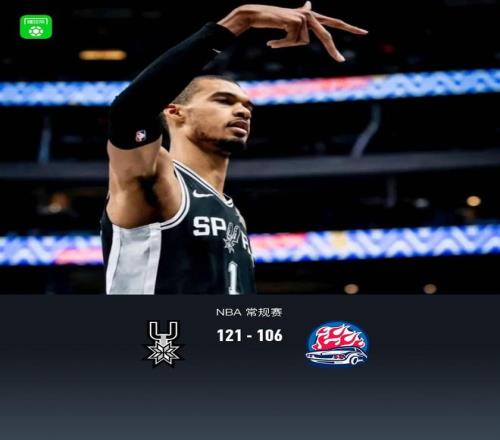 第四節馬刺尚帕尼拿下10分,活塞坎寧安拿下9分,最終馬刺121-106戰勝活塞