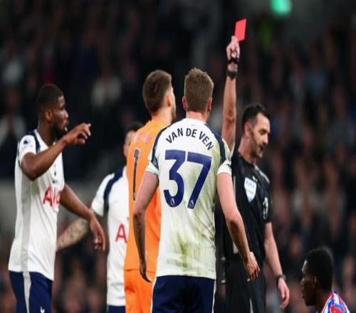 公平地說,這是范德芬在俱樂部首次染紅,但熱刺本賽季英超紅牌數(shù)已達(dá)4張,排名第二,黃牌72張,為聯(lián)賽最多。