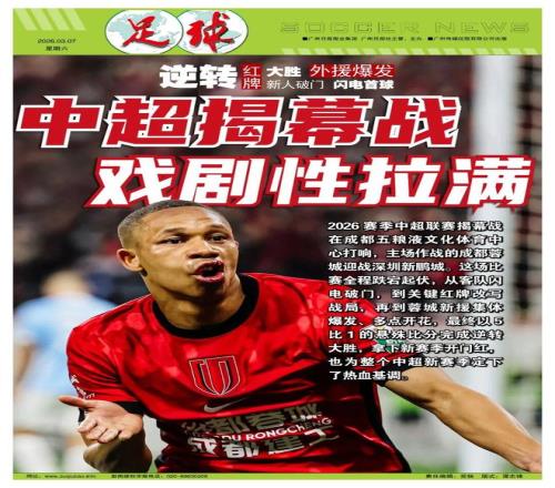 記者魯蜜報道2026賽季中超聯賽揭幕戰在成都五糧液文化體育中心打響,主場作戰的成都蓉城迎戰深圳新鵬城。這場比賽全程跌宕起伏,從客隊閃電破門,到關鍵紅牌改寫戰局,再到蓉城新援集體爆發、多點開花,最終蓉城以5比1的懸殊比分完成逆轉大勝,拿下新賽季開門紅,也為整個中超新賽季定下了熱血基調。