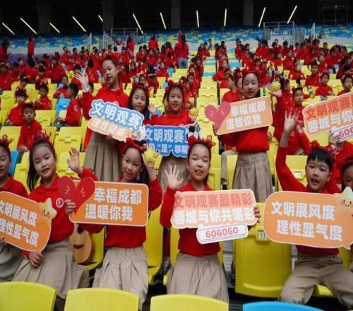 揭幕戰(zhàn)現(xiàn)場(chǎng),中共成都市委宣傳部、市文明辦聯(lián)合市少工委邀請(qǐng)紅領(lǐng)巾足球?qū)W校、四川天府新區(qū)第八中學(xué)、成都師范附屬小學(xué)、成都市第十八中學(xué)校等12所中小學(xué)的近600位同學(xué)們齊聚公益看臺(tái)。