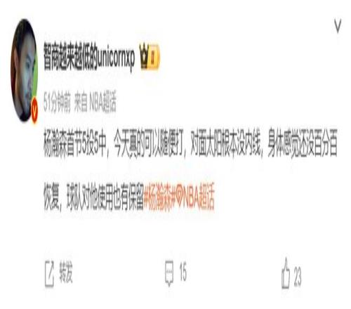 正如歐洲籃球?qū)<彝踅∷f,楊瀚森首節(jié)5中5可以隨便打,因為太陽根本沒內(nèi)線,楊瀚森在身體還沒有百分百恢復(fù)的情況下打得非常輕松,球隊對楊瀚森的使用也有所保留。