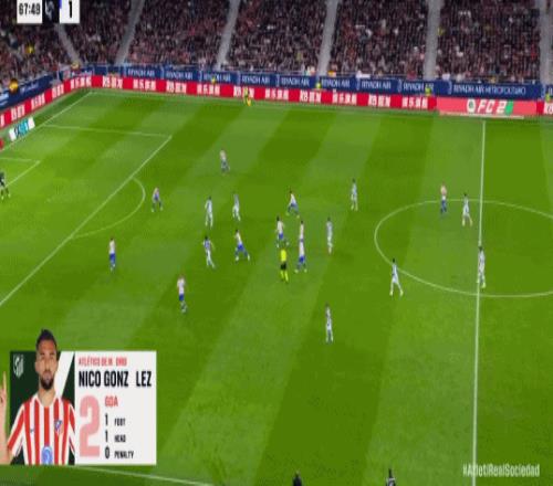 第67分鐘,格列茲曼腳后跟妙傳,尼古拉斯-岡薩雷斯破門,馬競2-1!