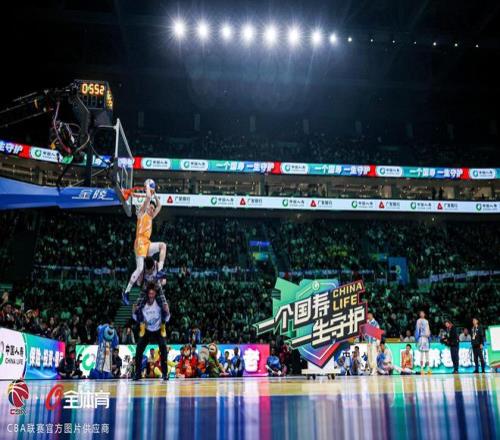 第三個出場的是預賽兩扣拿到100分滿分的遼寧本鋼球員俞澤辰。俞澤辰和隊友趙繼偉配合,趙繼偉將球拋到籃板側沿反彈后,俞澤辰接球背扣,這一扣創意拉滿,也得到了50分滿分。俞澤辰的第二輪扣籃壓力很大,因為他只有扣出50分才能追平張鼎巖的100分,把比賽拖入加賽。他仍然是和趙繼偉配合,趙繼偉將球拋到籃板上反彈后,俞澤辰接球轉身360度雙手扣籃,這一扣不論從配合的難度,還是扣籃的完成度都堪稱完美,最終俞澤辰得到50分滿分,比賽進入拖入加賽環節。