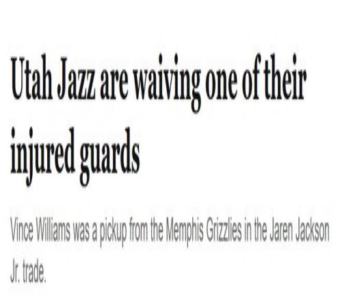 北京時間3月10日,據《鹽湖城論壇報》記者雷諾茲報道,猶他爵士隊將裁掉受傷的后衛小文斯-威廉姆斯。