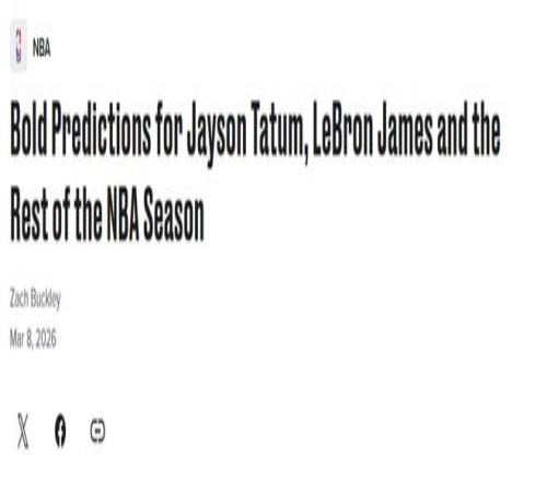 在常規賽進入沖刺階段,美媒《BR》對剩余賽程曬出5個大膽預測,其中包括庫里痊愈復出率勇士殺入季后賽,以及4號秀克努佩爾擊敗“美國之子”弗拉格拿下最佳新秀。