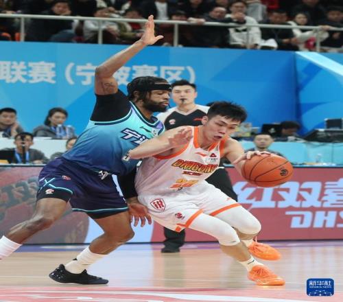 限制龐崢麟(右)是山東男籃的首要任務。新華社發