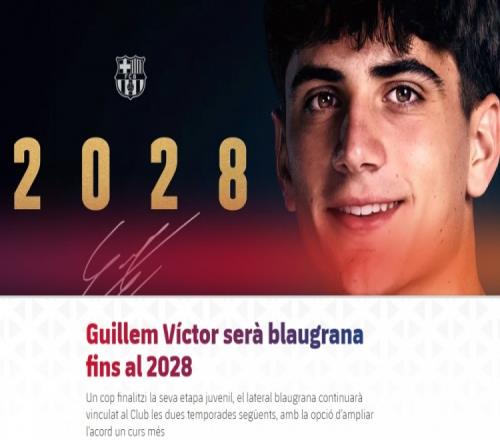 體育播報3月10日宣 巴薩官方消息,俱樂部與小將吉列姆·維克托續約至2028年,合同含續約一年條款。