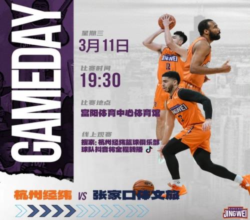 2026年3月11日19:30,2025-2026賽季NBL聯賽常規賽第22輪,杭州經緯將繼續坐鎮主場,迎接張家口體文旅的挑戰。