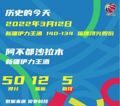 體育播報3月12日宣 4年前的今天,新疆球員阿不都成為史上唯一一位單場砍50+10+5的本土球員。